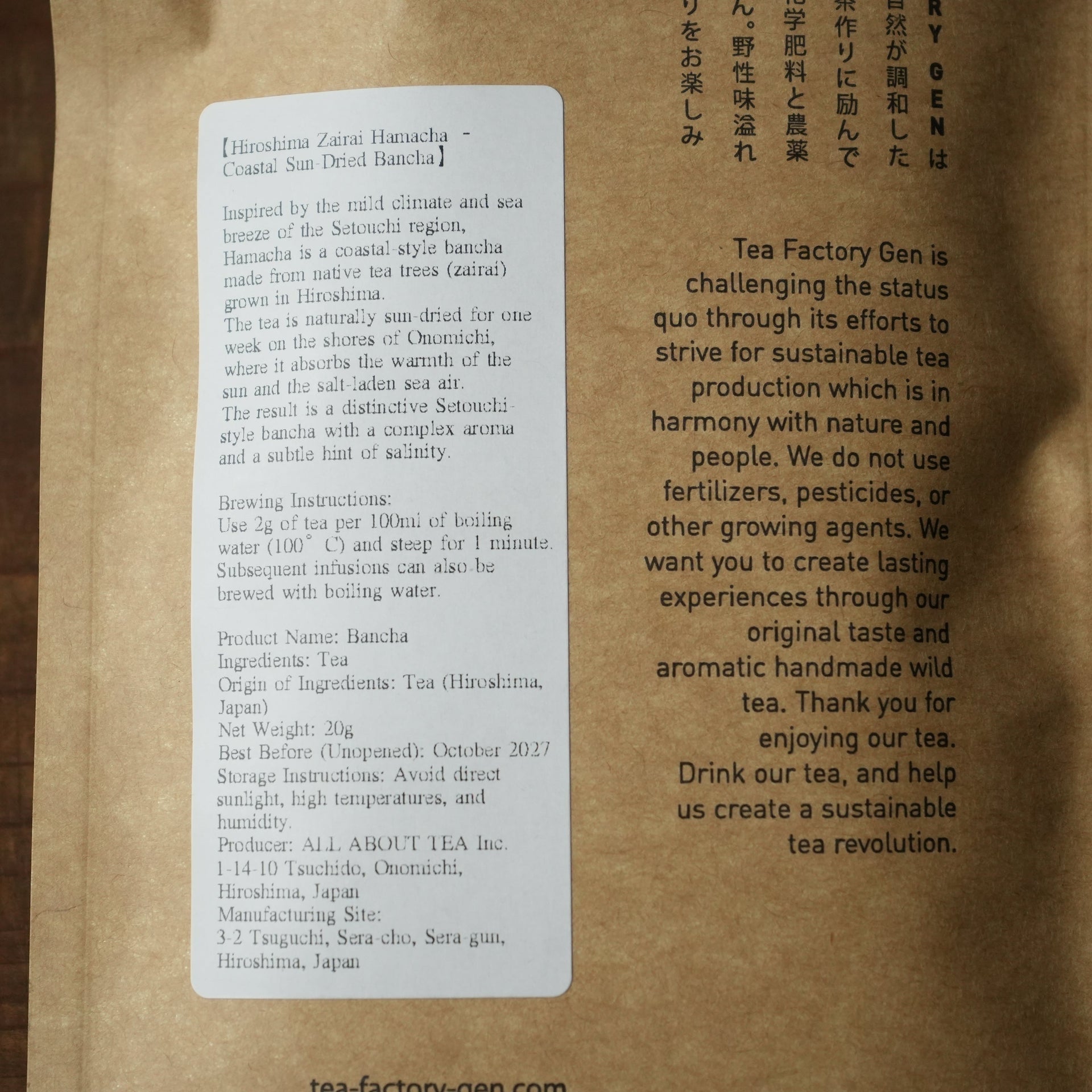 Hiroshima Zairai Hama-cha - Native Bancha Dried At Beach by TEA FACTORY GEN 30g/1.06 oz