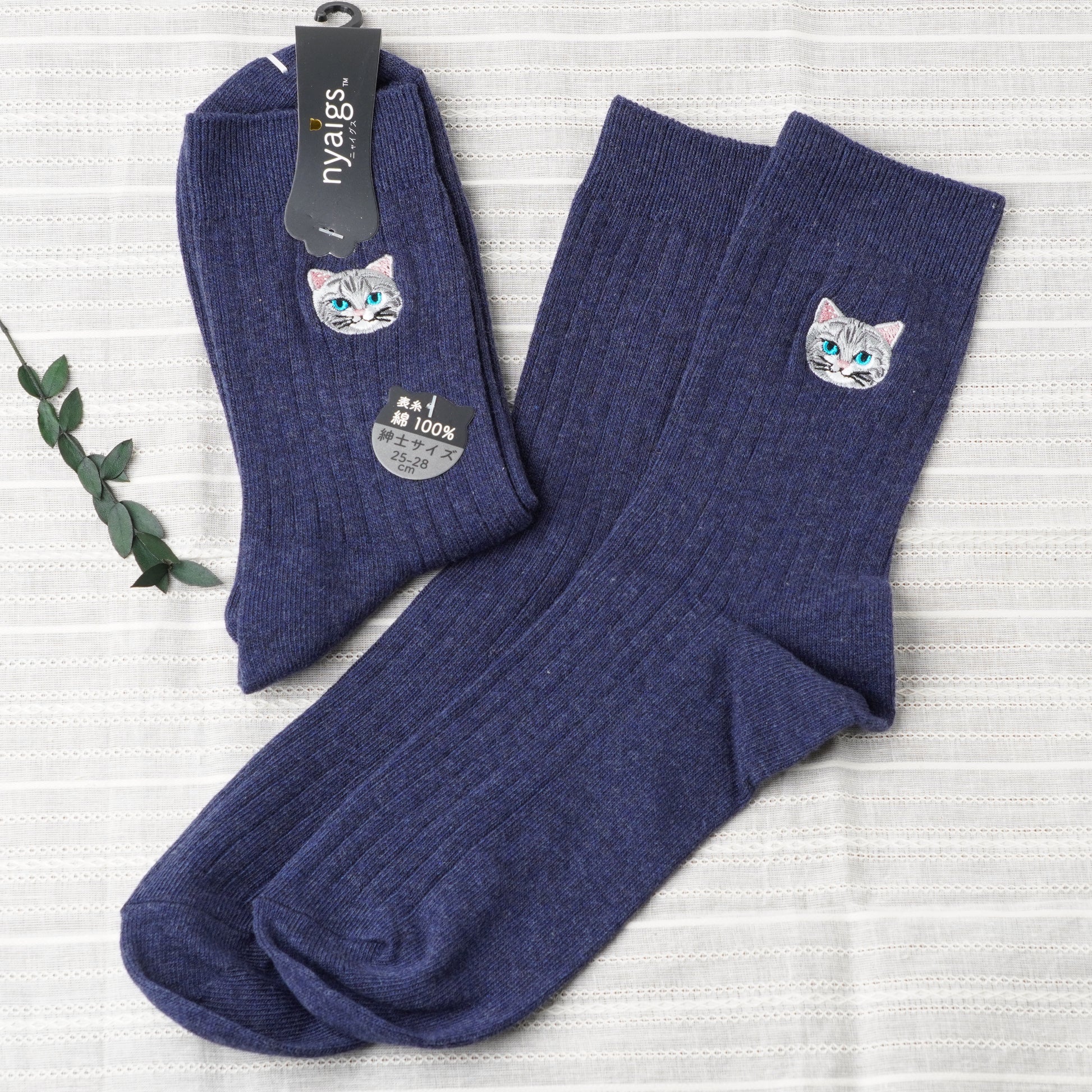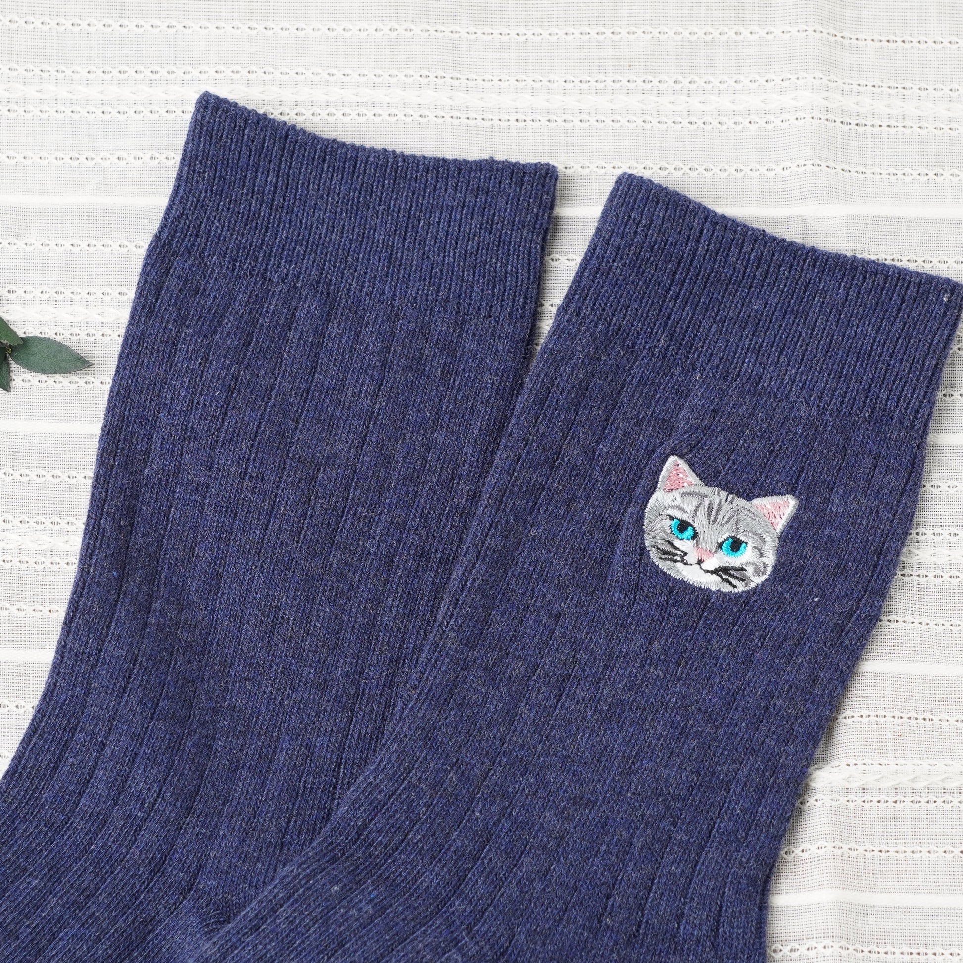 Cute Cat Socks L Navy – American Shorthair Embroidery