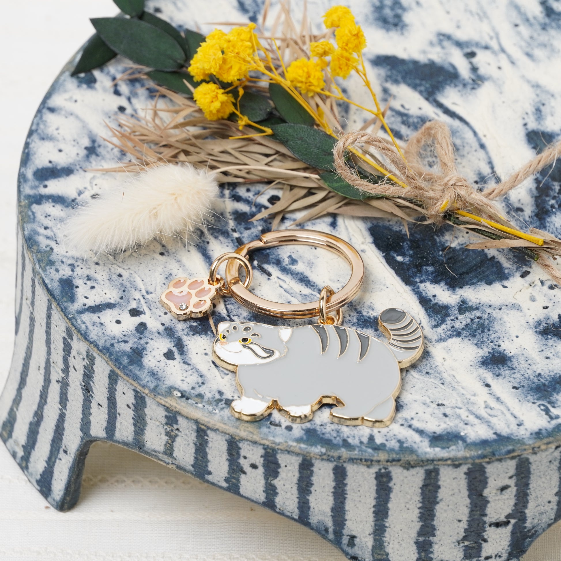 Animal Key Ring with Mini Charm Cat